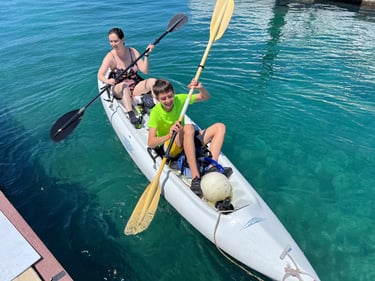 Snorkel, kayak, paddle board, in turquoise tropical waters