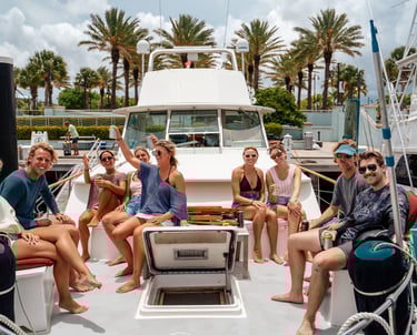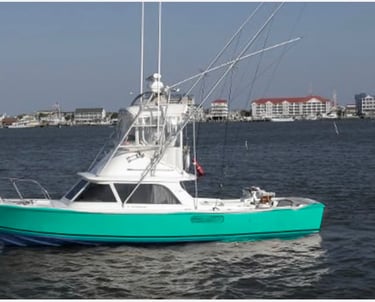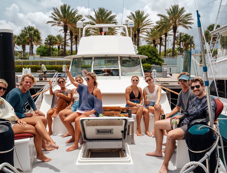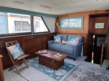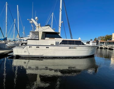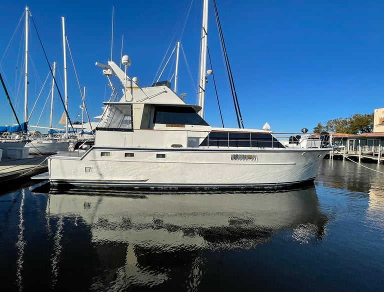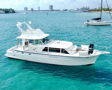 Lounge, dine, drink, sunbathe on a 50’ classic american motoryacht