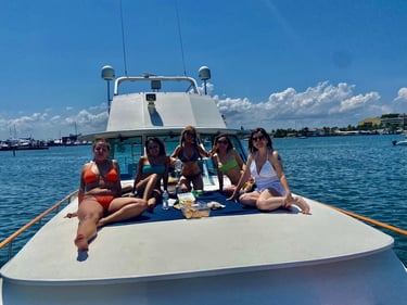Lounge, dine, drink, sunbathe on a 50’ classic american motoryacht